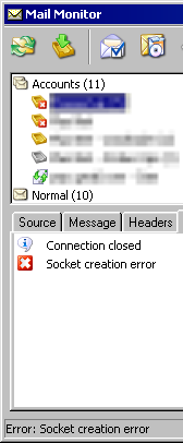 Initially I got Socket creation errors on all my accounts, but it cleared up after a few minutes so I put it down to some problem getting started, but it just happened again today after having been working previously.