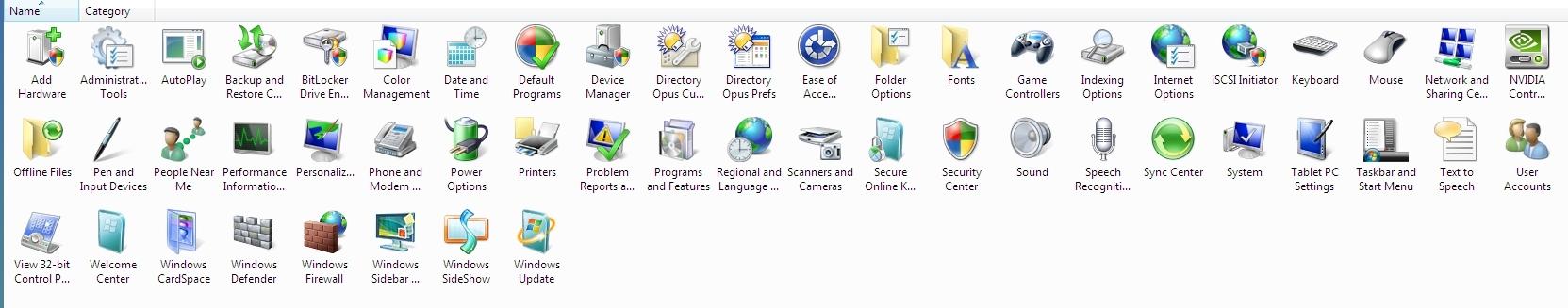 The non-standard items are the two Directory Opus and NVIDIA control panel items.