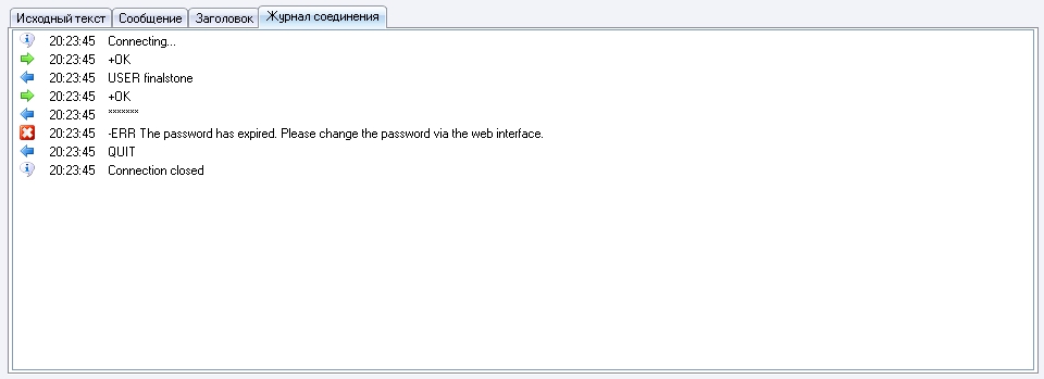 Вобще не пойму в чем дело. Сделал заново ящик, и все равно не работает. Причем ошибка вылетает мгновенно, без ожидания таймаута. в прошлом году с теми же настройками все работало. Ошибка я так понял в пароле. Но Почему оно работает один раз в десять раз???