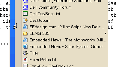 Sometimes, the last item in a same-letter menu item list gets skipped entirely. This has happened several times in a row on "e" (see SNAG-0008.gif), where "Embedded News - Xilinx ..." is skipped over on "e" click when the item above it ("Embedded News - The MathWorks ...") is highlighted, regardless of the time lapse between consecutive "e" keystrokes.