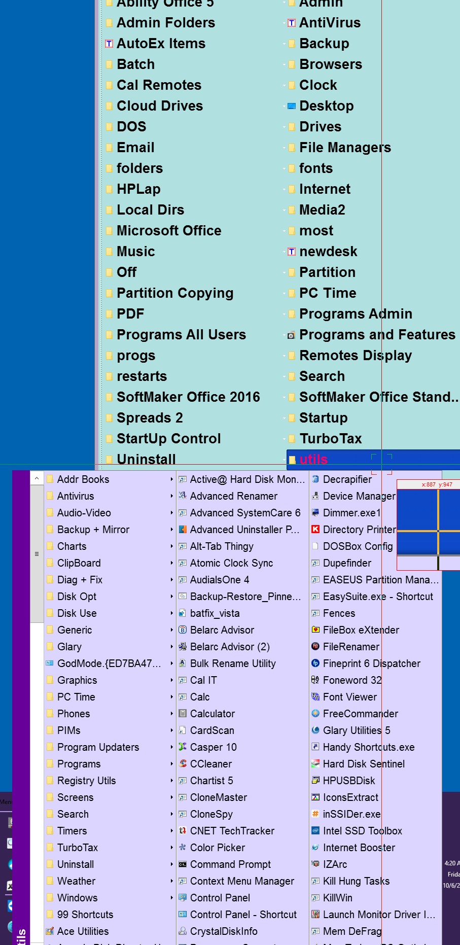 Screenshot. Only about half of the lower pink menu shows up. It has scrollbars.