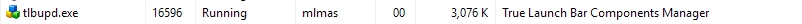 After I clicked Check for updates I did see tlbupd.exe but it was under the details tab. On the Process tab I saw true launch bar components manager.