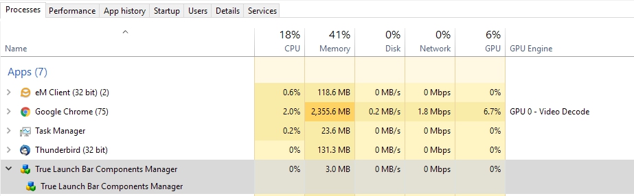 (12-01-2017, 08:32 AM)Yuri Kobets Wrote: Hmm... it is interesting. Do you use 64 bit Windows or 32 bit? Also what type of TLB do you use? Is it Standalone True Launch Bar or on the taskbar?