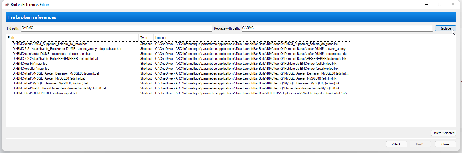 This would be very helpful. I see my many, many broken links but I can't replace them or I don't understand how it works! I'm sorry! For example, when I try to replace "D:\" with "C:\" with the "Replace" button, but I don't see a change. Also, when I press the Enter key, I lose my window.