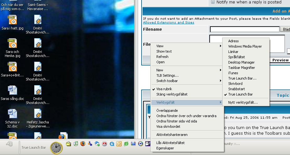 I must really be stupid. I´m swedish, and I´m not sure what a chevron is. And no matter how much I right click on the left or top of the toolbar I don´t get the alternative to close the toolbar. Or rather, I get the option to close True launch bar altogether, but that´s not what I want. :oops: