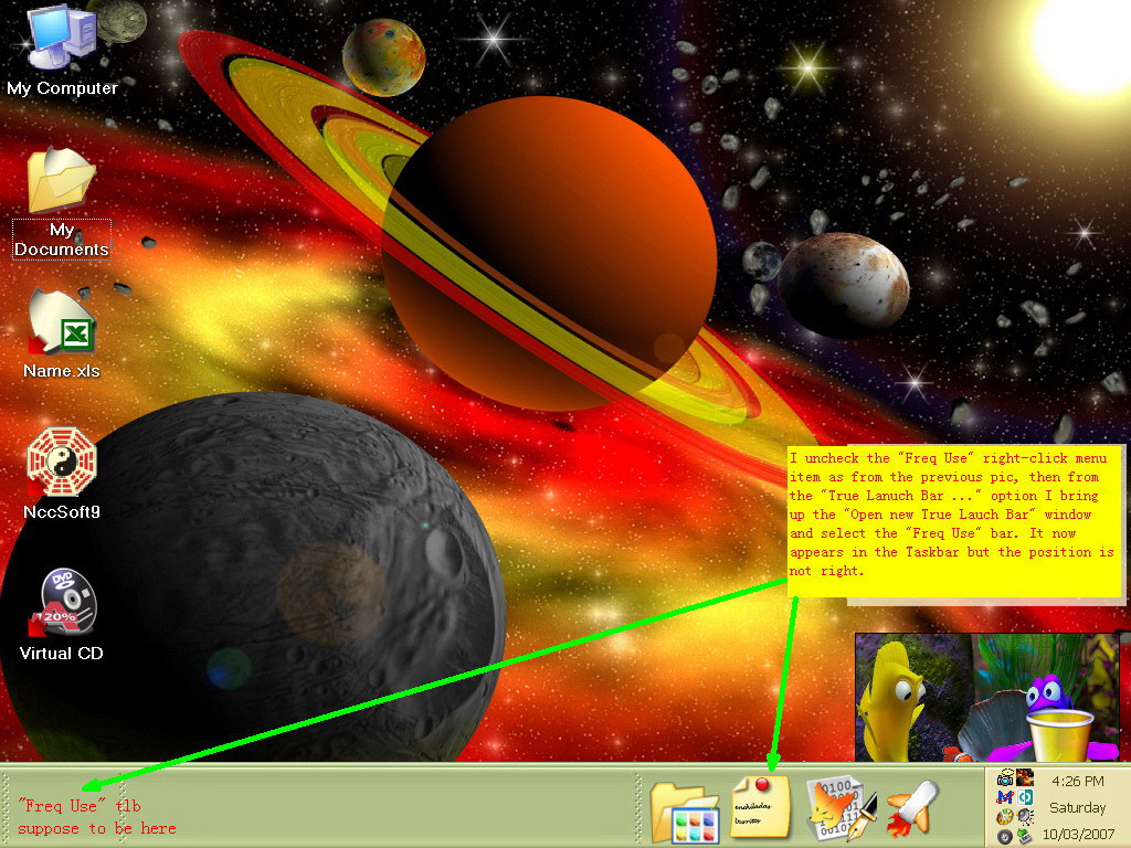 and sometime language bar jump to the leftmost edge and true launchbar sit in the middle... in brief it is a big mess in the taskbar...