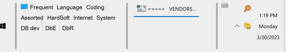 If you look in the attachment, you see I have three rows of TLB menus in the Taskbar. And you also see how much empty space there is below the third row (about 40 % of the entire Taskbar height). But when I decrease the size of the Taskbar one step (can only be done in steps here), the third row disappears.