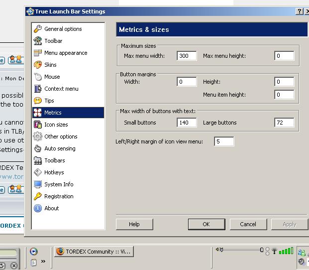 2) TLB Settings->Metrics->Button margins set these values into zero. This will help you to save some pixels