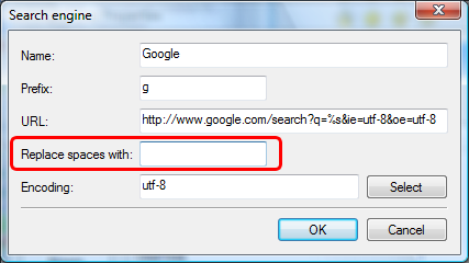 What do you have in the "Replace spaces with" field? live it empty for google.
