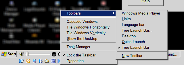 My task bar has "True Launch Bar" selected, but not "Quick Launch":