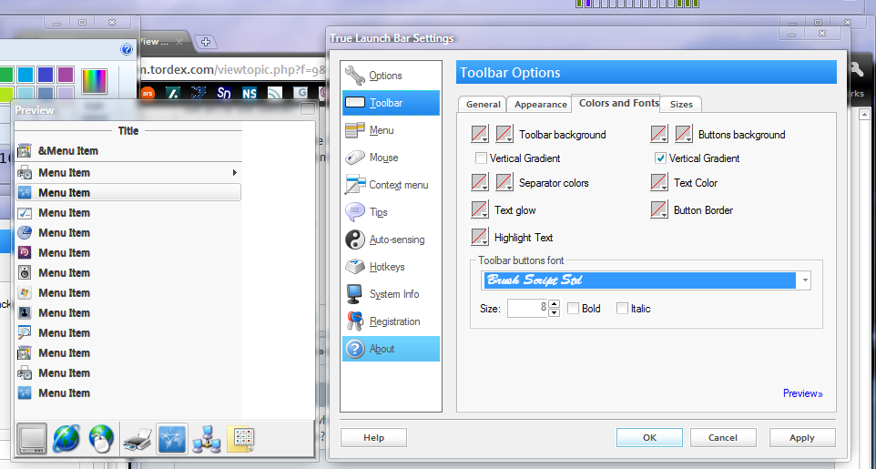 PS. I guess TLB ignore the font selection for the toolbar buttons. Please can you try to make the button with the label and change the toolbar font.