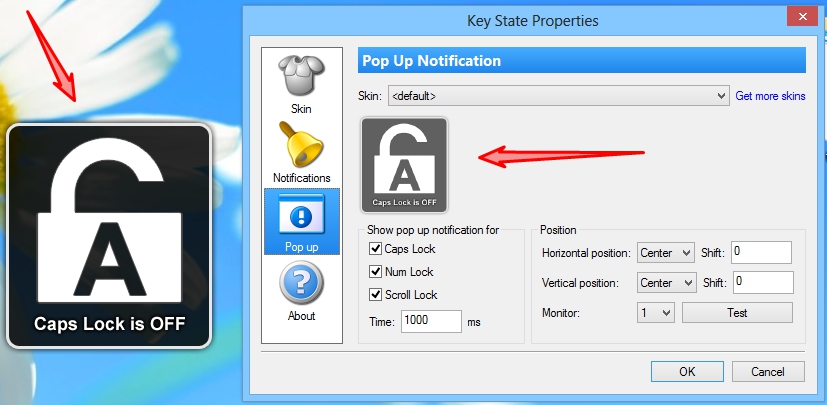 - Pop up notifications with customized time, position and skin