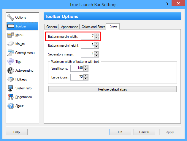 I have recently installed TLB 6.5 on my new PC working under Win 8 and I want to add some spaces between each icon because I realize they are too closed each other as shown below: