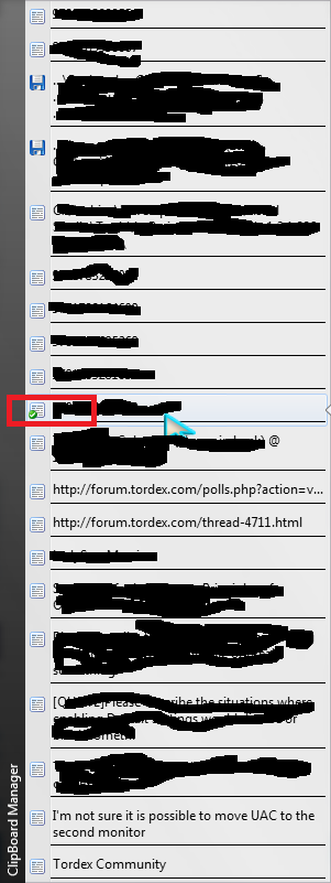If I click the dropdown to reveal the list of clipboard items, then select one of the items as the "default" sometimes the white check with green circle will appear and other times it will not. Usually it will not. It seems only simple clipboard items will get selected, such as the text "everything" but a multi-line HTML clipboard item will never get selected as the default.